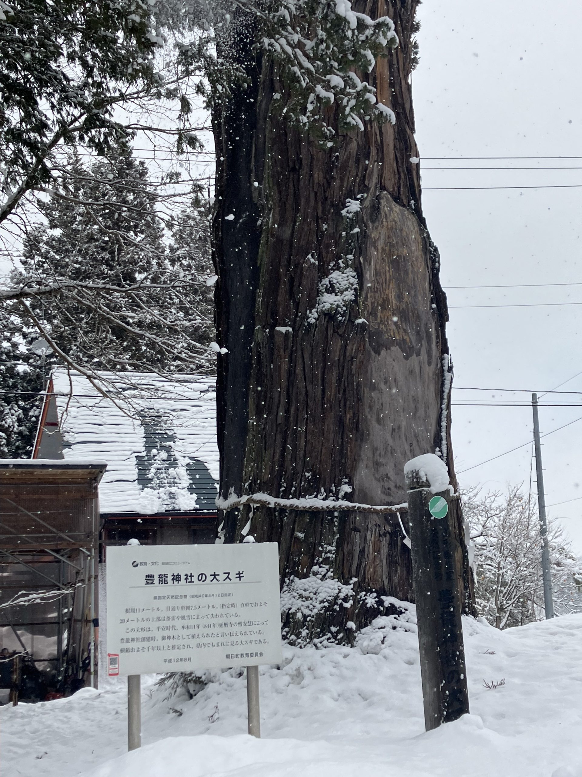 こんにちは 森本です。 新年ということで社員全員で年始のご参拝を行いました。 場所は朝日町の豊龍神社です。⛩️ ご参拝の際に、立派なご神木に心を奪われてその際に シャッターを切りました。 樹齢およそ千年以上と推定されてい …
