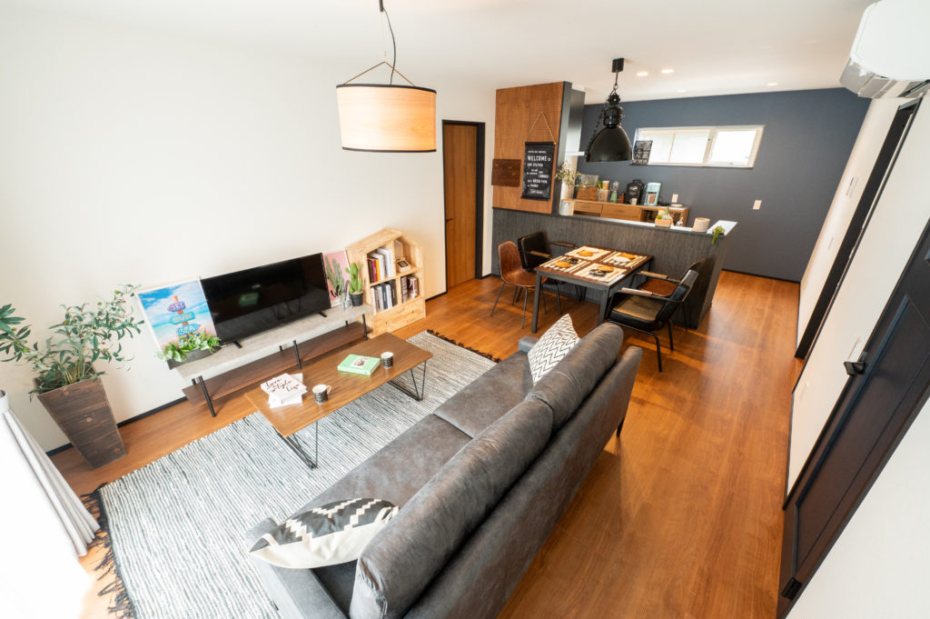 シックで落ち着いた印象のリビングに。