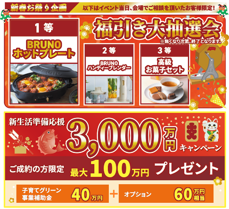 ※ご成約プレゼントは、30組限定、6月までの着工が条件となります。