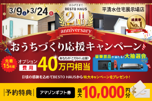2周年記念 おうちづくり応援キャンペーン 平清水住宅展示場店 3/9-24