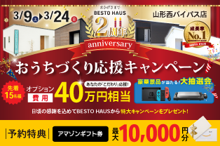 2周年記念 おうちづくり応援キャンペーン 山形西バイパス店 3/9-24
