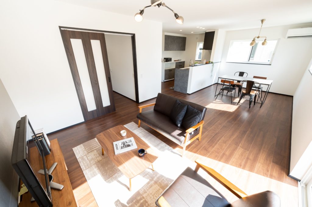 広々としたリビングは、家族でゆったりと過ごせる開放的な空間に。